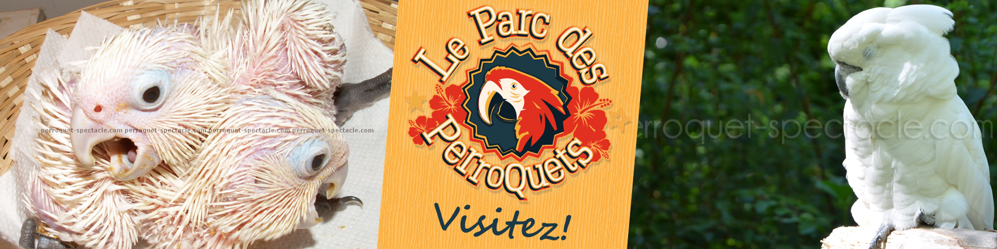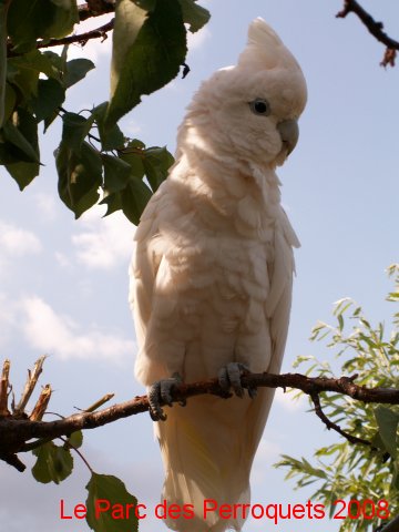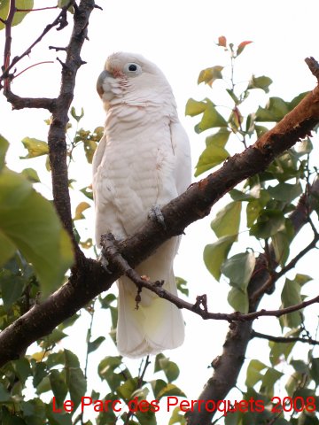 Chaque après-midi, de jeunes cacatoes apprivoisés évoluent en liberté dans les arbres du Parc des Perroquets.